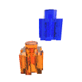 PixelBlocks come in a single shape, featuring a peg-and-hole combination for stacking top-to-bottom, and a unique tooth-and-groove combination on the other four sides. The unique shape allows PixelBlocks to be connected in three versatile ways that enable you to build effortlessly in 2-D or 3-D. The blocks themselves are approximately 3/8" (0.9 cm) translucent cubes.