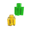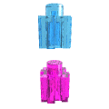 PixelBlocks come in a single shape, featuring a peg-and-hole combination for stacking top-to-bottom, and a unique tooth-and-groove combination on the other four sides. The unique shape allows PixelBlocks to be connected in three versatile ways that enable you to build effortlessly in 2-D or 3-D. The blocks themselves are approximately 3/8" (0.9 cm) translucent cubes.